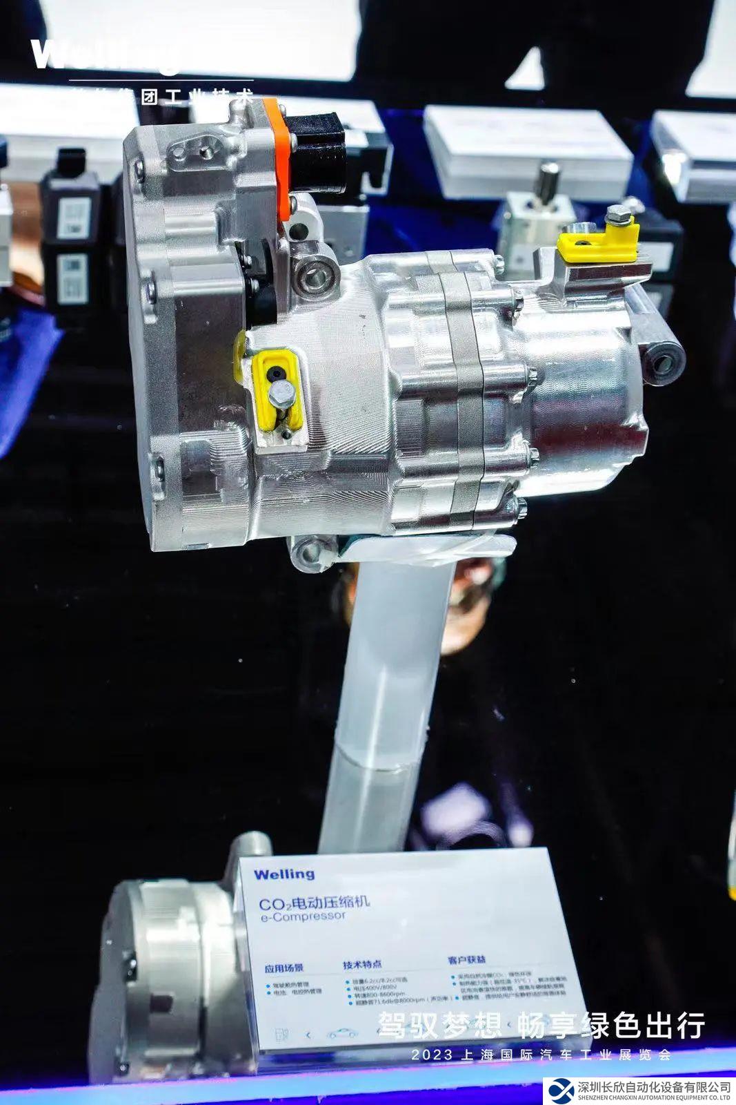 威灵汽车部件现场展示了包括800V碳化硅12000转电动压缩机、适配二氧化碳冷媒CO₂的电动压缩机等明星产品。其中全球首款量产的800V碳化硅(SiC)高转速电动压缩机,其采用业内领先的超高绝缘耐压技术、交叠分块电机专利技术、电磁场优化及SiC碳化硅压缩机电控方案,具备高可靠、超强劲冷热、静音以及轻量化等优势,为新能源汽车迈入800V超快充时代奠定基础。此外,新发布的热管理集成模组(大集成)、适用于A00级车的电动压缩机(创新转子式)两款热管理新品也进行了现场展示。
