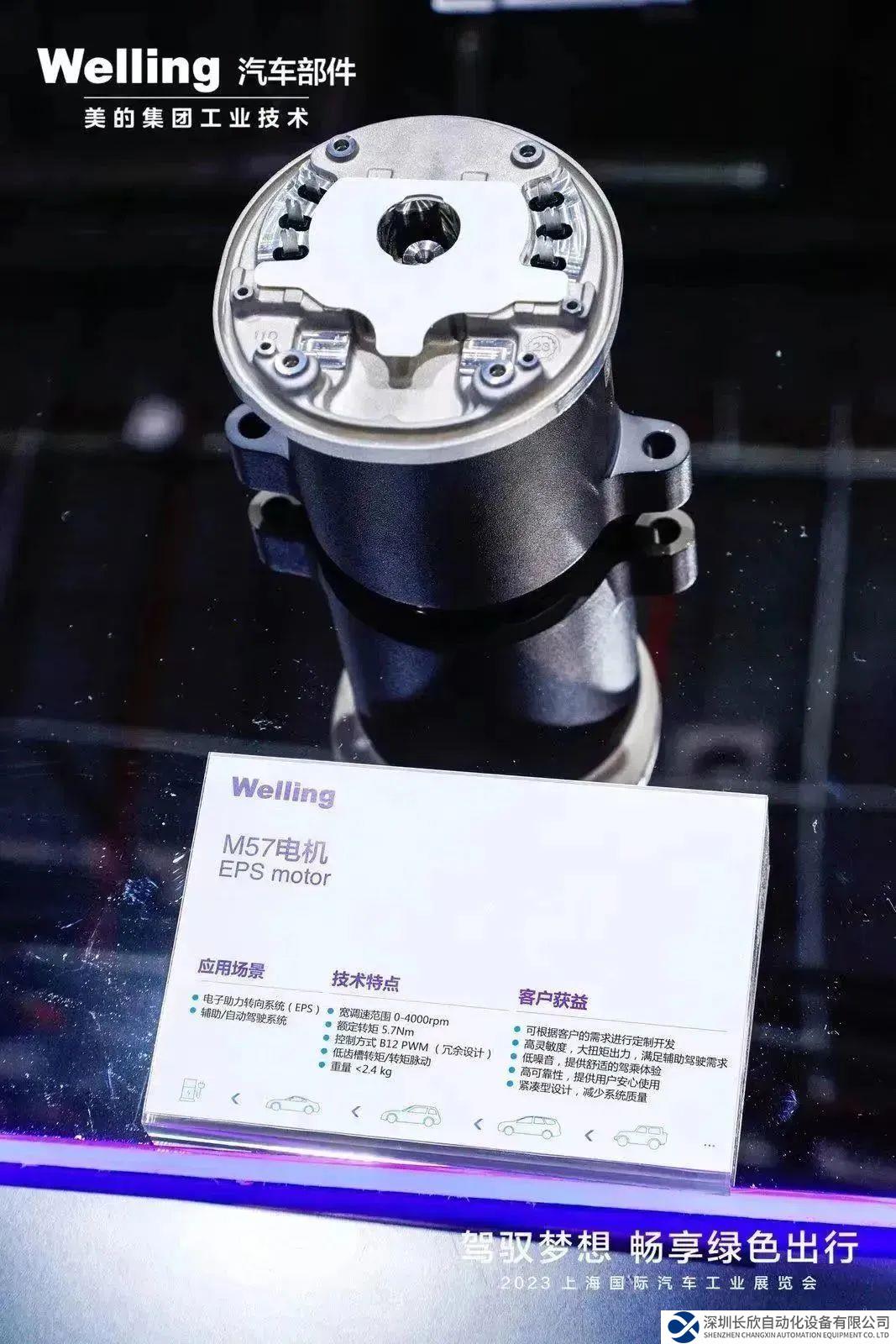 这里展示了包括EPS电机(M57\M50\M63)、手感电机以及空气悬架供气单元。EPS作为自动驾驶其中的重要一环,对静音、高灵敏度以及助力输出的适应性都提出了极高的要求,威灵汽车部件EPS电机不仅满足了这三项严苛要求,同时还具备结构紧凑、可靠性高的特点,广受市场认可。
