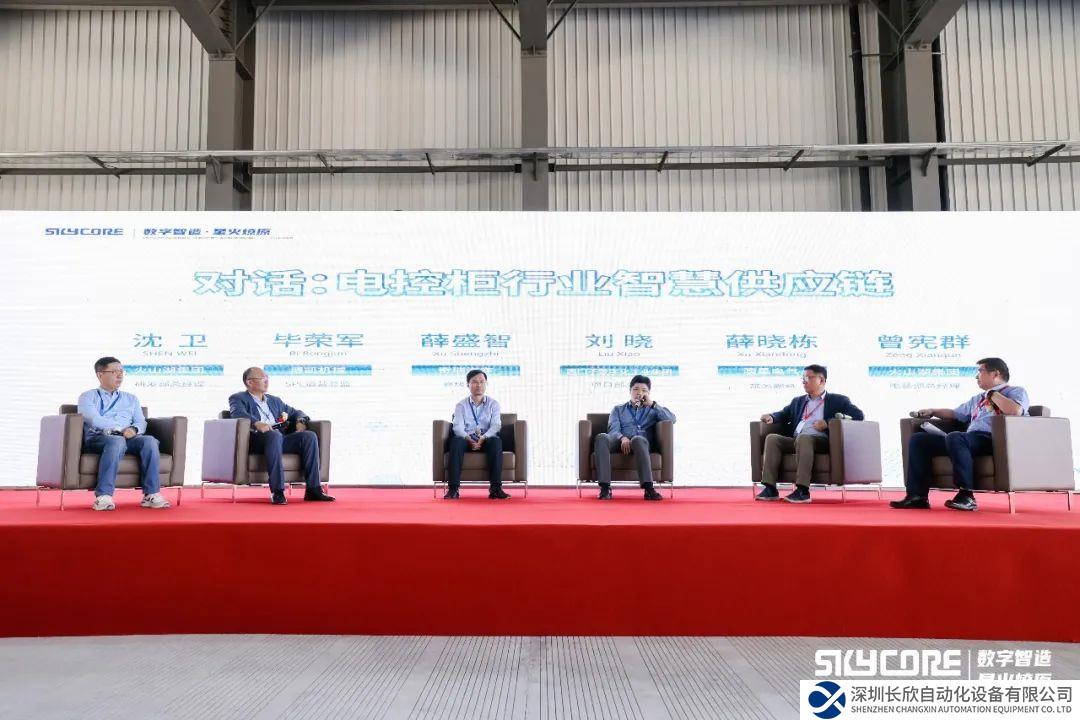 在“电控柜行业智慧供应链”对话环节,火山湖技术研发总经理沈卫就电控柜行业智慧供应链这一话题,与博凯机械上海有限公司/葆科物流科技上海有限公司SPL大供应链总监毕荣军、奇瑞汽车高级经理薛盛智、西门子数字化工业集团流程行业工程中心项目总监刘晓、澳星电气常务副总经理薛晓栋、火山湖电装部总经理曾宪群,根据各自企业不同的特点,就中小企业数字化转型、供应链协同等话题展开深入讨论。各位嘉宾各抒己见,现场气氛活跃,为推动产业发展提供了宝贵经验。