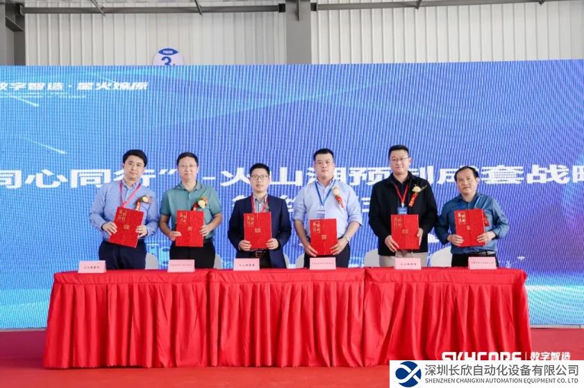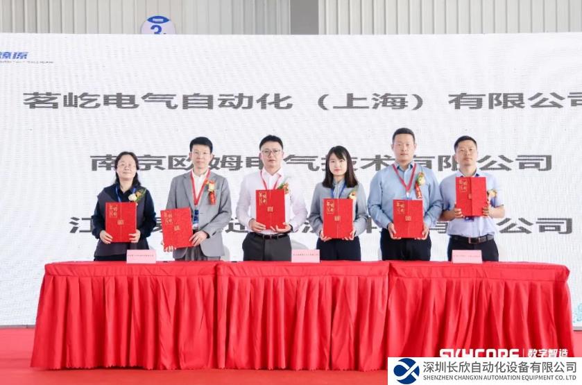 此外,火山湖还在发布会现场与安徽瑞祥工业有限公司、无锡沃兹智能科技有限公司、晁哲智能科技(上海)有限公司、茗屹电气自动化(上海)有限公司、南京欧姆电气技术有限公司、江苏易飞迅物流科技有限公司等重要行业伙伴签署机箱机柜、预制成套战略协议,未来将协同推进产业生态建设,深化产业合作、实现战略共赢。