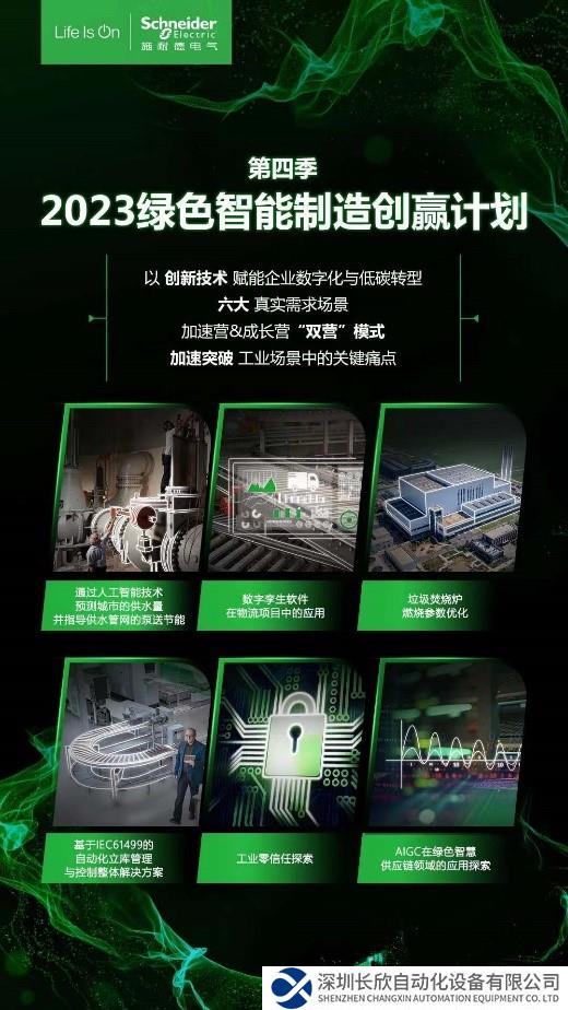 伴随“绿色智能制造创赢计划”第四季的正式启动,施耐德电气期待更多富有创新激情、追求成长与卓越的中小企业,加入绿色智能制造创新生态圈,在数字化和低碳双转型大潮中,一同将创新构想落地生根,共创共赢,为推进中国工业的转型升级与高质量发展贡献力量。