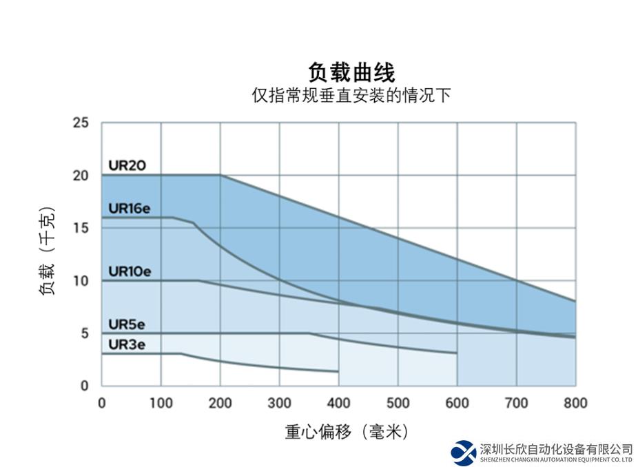 【图:UR20负载偏移曲线,即使在200毫米重心偏移后仍有20千克的负载输出】