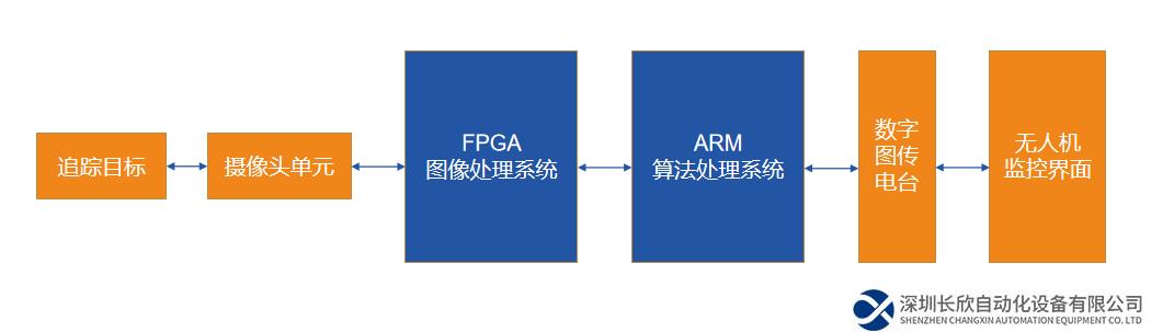 跟踪目标-图像采集模块-FPGA图像处理系统-ARM控制处理系统-无人机实时监控系统