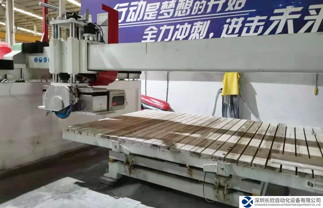 在石材制造业中,切割的工作量占很大的比重,切割技术影响着企业的生产成本,切割效率、切割质量则是直接影响生产效益。因此客户想通过方案升级使桥机切自动运行来实现对石材的自动、智能化切割加工,以达到石板的批量化、标准化的切削加工,同时通过数控系统对加工过程中板材的移位来避让刀位。
