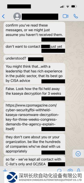 值得注意的是,作为惯用TTP的一部分,该网络犯罪集团不仅积极联系Dragos的高管,还在对话中提及高管的家庭成员和联系人。