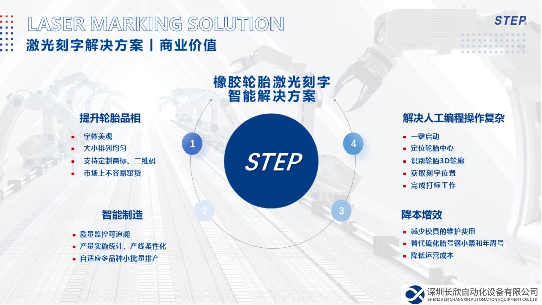 本次广饶展,所展示的橡胶轮胎激光刻字智能解决方案,以智能化、低能耗、高安全性、高灵活度、简单易用的工业机器人结合先进的激光技术,解决了传统轮胎生产中周期牌、钢小票和硫化镂空条码的工艺痛点,方案为行业首创,切实可行、易落地、易规模化导入。