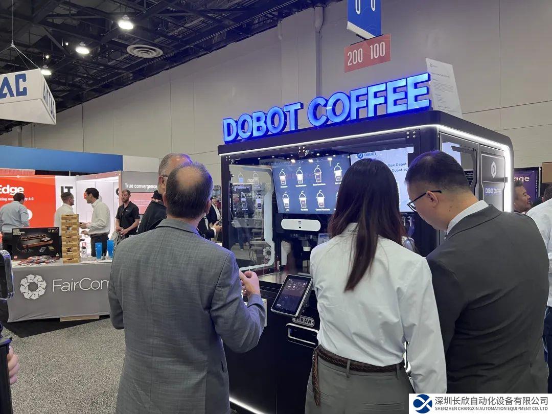 越疆机器人咖啡站内置 DOBOT Nova 2 协作机器人,最快 48 秒完成咖啡制作,可实现取杯、制作、拉花、出杯、清洗及消毒自动化,制作流程无需人工参与,24 小时不间断营业。