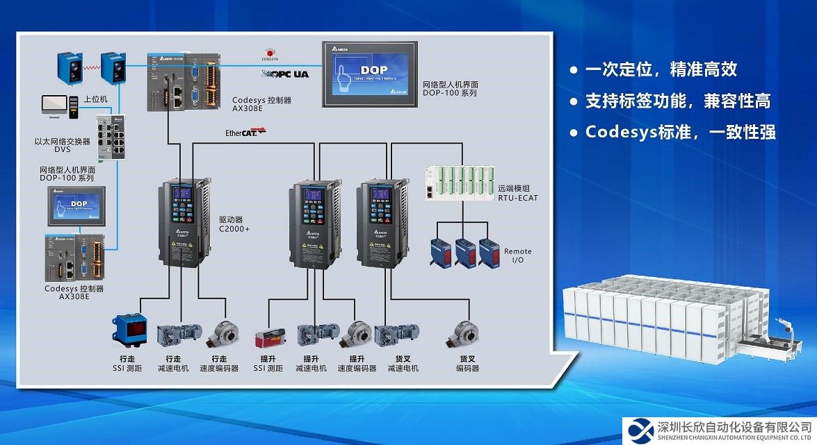 台达为化成库提供整体解决方案,可为控制设备提供高效的S型加减速控制曲线,模块化程序设计,移植性高,显著提升化成库的精度和效率。