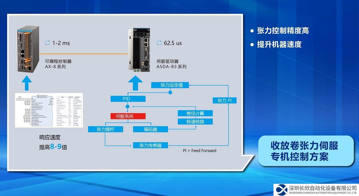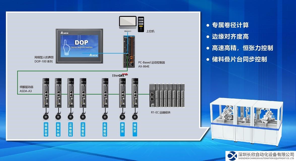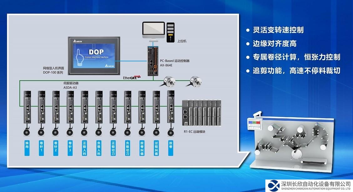 通过精益的程序设计,使得涂布机、辊压机、分切机、模切机、卷绕机、叠片机等设备的张力控制精度大幅增强,以提升设备的运转速度;