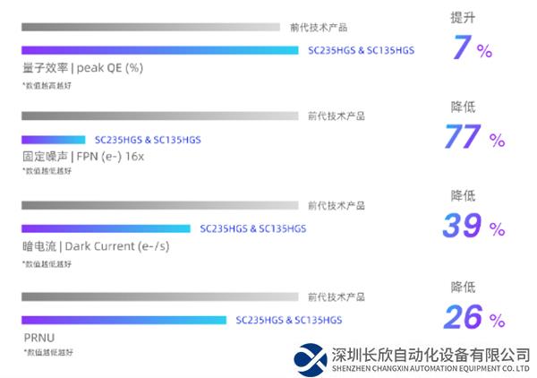 在SmartGS®-2 Plus先进技术加持下,SC235HGS和SC135HGS峰值量子效率(peak QE)可达90%,与前代技术产品相比,提升了约7%。即使在低光照工业环境中,新产品的高QE性能仍然能够帮助机器视觉相机准确地检测和测量目标,高效解决自动化流水线视觉信息采集难题。