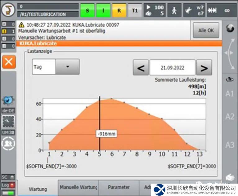 KUKA.Lubricate 软件适用于 KL 5000导轨,该软件会自动记录并评估机器人的距离和运行时间,并展示机器人历史概况,维护任务及润滑消耗等信息。