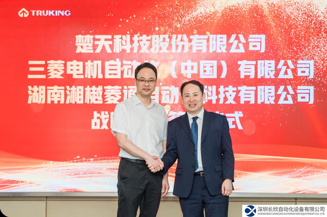 6月13日,三菱电机自动化(中国)有限公司(以下简称“三菱电机”)经营企划室室长山本圭太、湖南湘樾菱通自动化科技有限公司(以下简称“湘樾菱通”)总经理周振国等一行前往湖南宁乡,与楚天科技股份有限公司(以下简称“楚天科技”)签署战略合作协议,楚天科技执行总裁曾凡云、高级副总裁谭亮、高级副总裁肖绍贵等出席签约仪式。