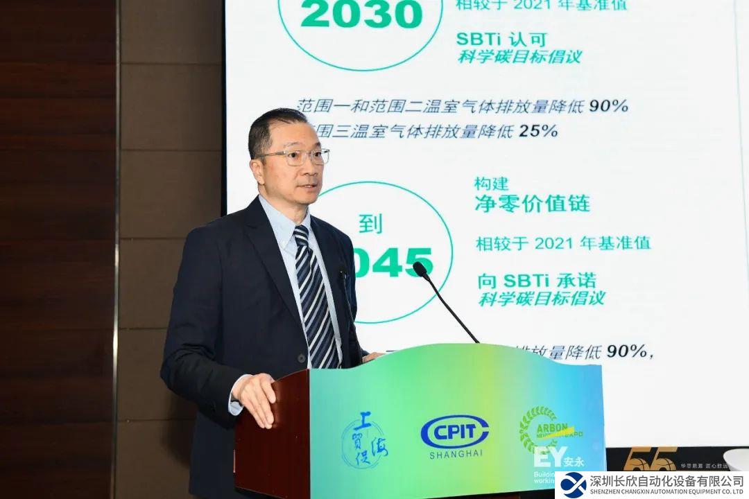 王毅峯先生在发言中介绍了艾默生的业务发展动态以及“绿色行动、绿色方案及绿色合作”的环境可持续发展框架。艾默生已做出郑重承诺,致力于实现自身的净零目标:到2030年实现净零运营,并在全球范围内的生产设施使用100%清洁能源,到2045年构建净零价值链。