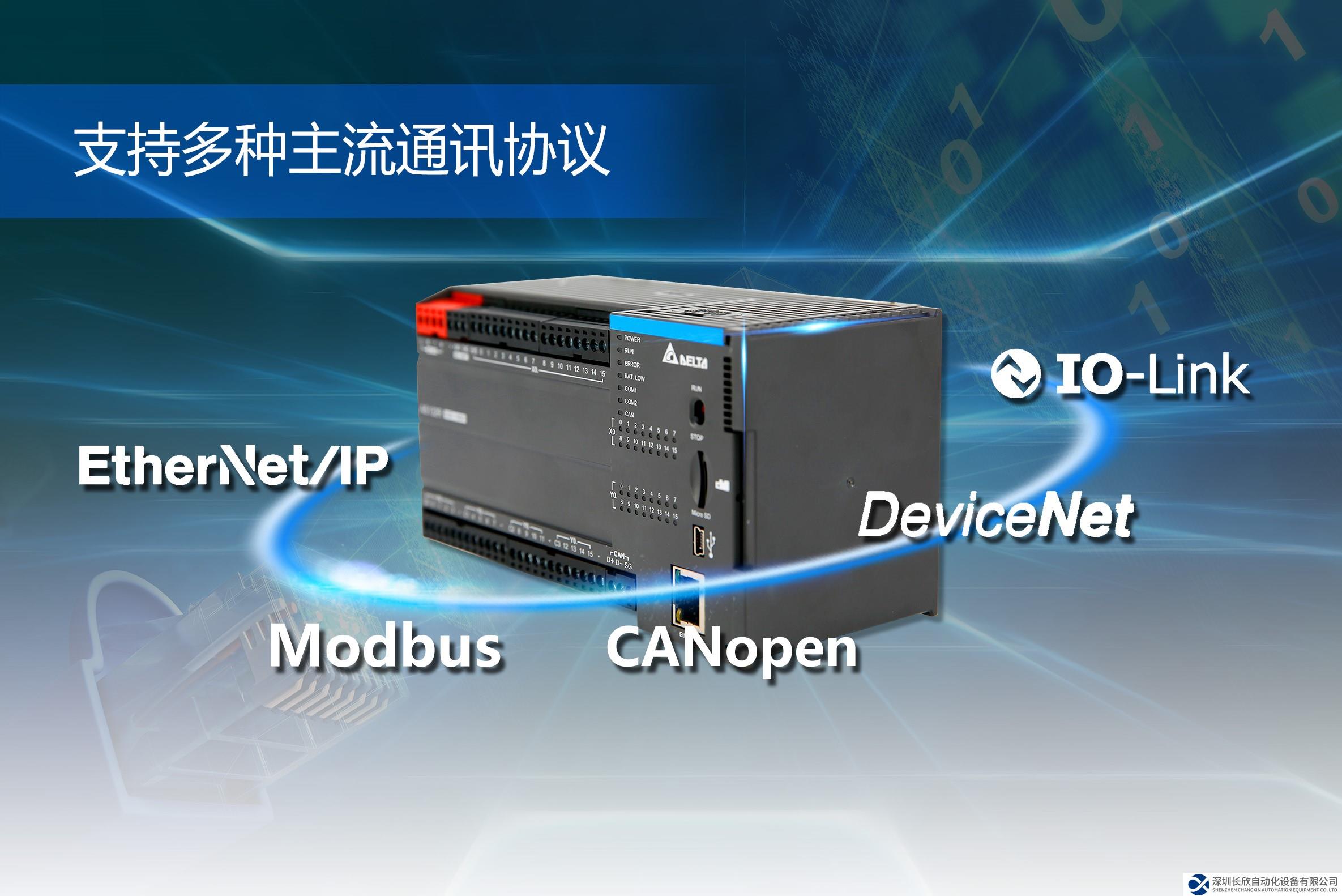 内置以太网端口,支持Modbus、CANopen、Ethernet/IP、DeviceNet、IO-Link等工业以太网及现场总线通信协议。