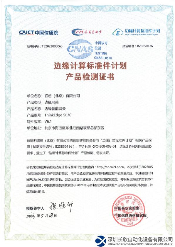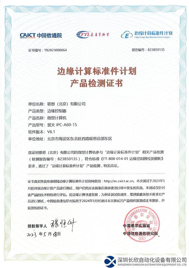 (边缘计算标准件计划产品检测证书)