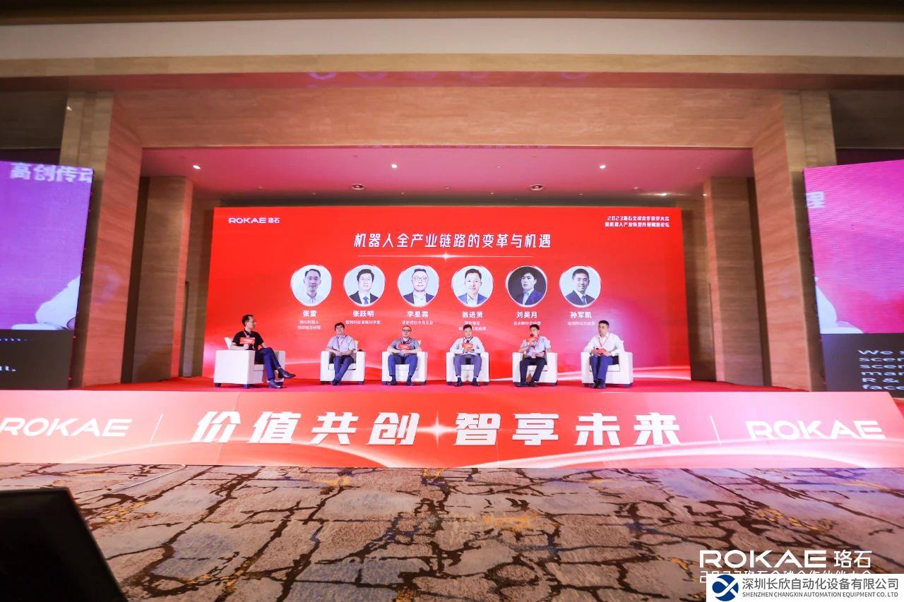珞石机器人供应链总经理张雷携智同科技首席科学家张跃明,清能德创市场总监李星霖,绿的谐波销售公司总经理翁进贤,蓝点触控总经理刘吴月,高创传动总经理孙军凯等业界精英们共同探讨了“机器人全产业链路的变革与机遇”。围绕机器人应用泛化对机器人产业带来的挑战与机遇、机器人产业的强板与短板、国产机器人企业走向全球化的趋势与路线等话题,企业高管们展开深度交流与沟通。