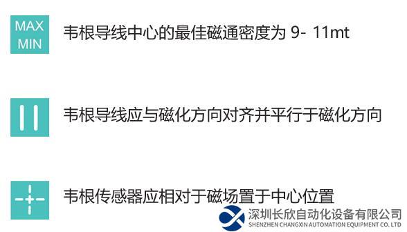 有许多应用可以利用韦根传感器的独特特性。磁性系统的设计是实现成功整合的一个关键方面,在产品数据表中定义了一个推荐配置。然而,其他有效的设计配置也可以实现相应功能,例如使用不同的磁铁、机械解决方案和封装。一个成功的设 计需要达到一些目标标准/条件,可以作为设计指南。建议对任何设计进行广泛的测试,以检查脉冲质量是否符合应用要求。