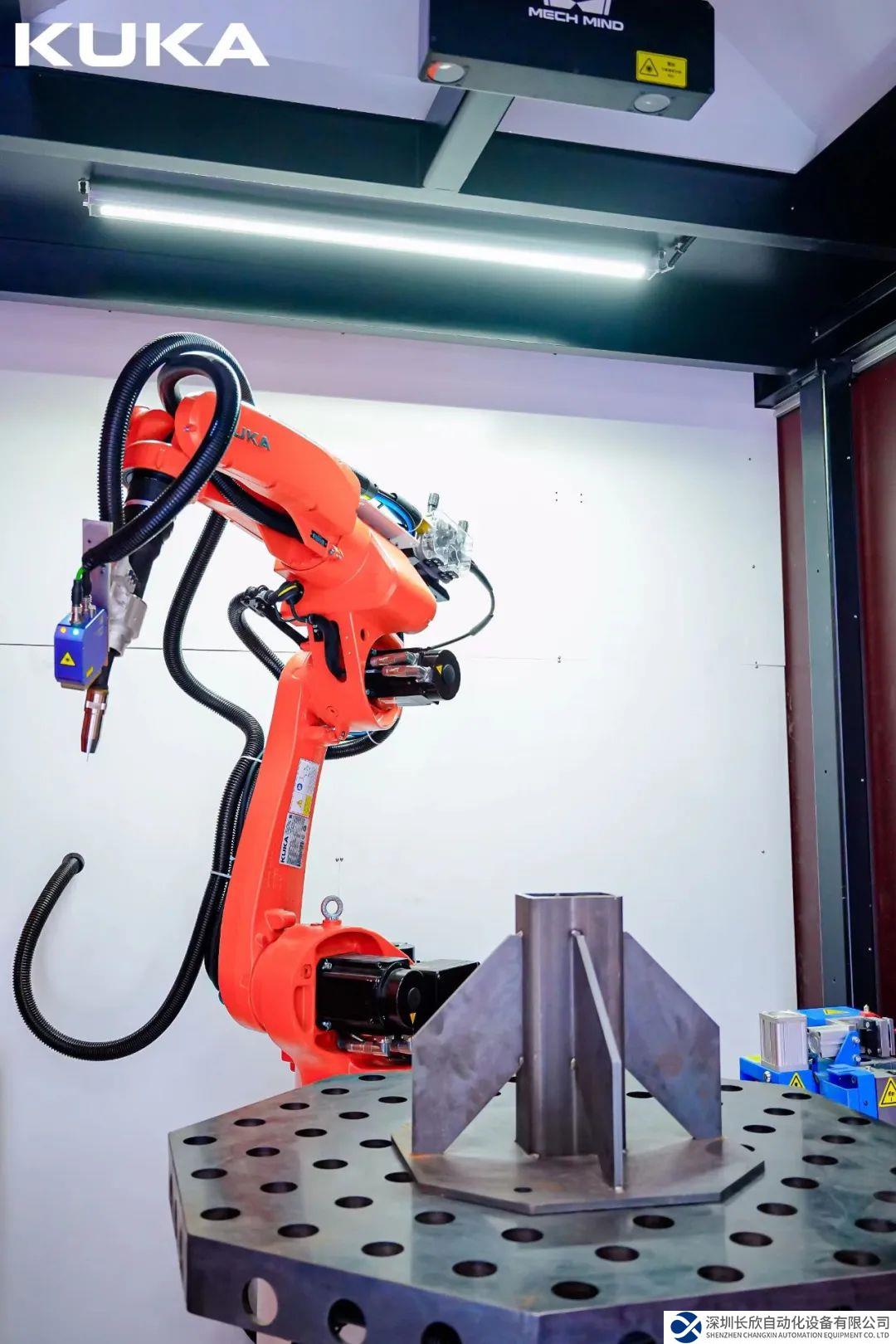 智能焊接机器人集成工作站是基于KUKA.Sim Pro 平台开发的智能焊接系统;配合高柔焊接平台,通过3D智能相机算法定位,实现产品粗定位、免编程、免示教,一键智能焊接。此外,机器人路径可以实现自动规避、自动避障的功能,并通过激光跟踪器&Touchsense实时焊缝跟踪,支持对接,搭接,坡口焊接,圆形焊接,包边焊接及多层多道等复杂焊接工艺。工站支持产量统计和实时监控,可适配库卡各型号机器人、各型号焊机及各种焊接平台,适用于小批量,多品种的焊接工况。