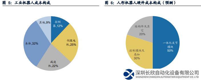 以人形机器人为代表的AI机器人相较工业机器人结构更为复杂,运动模块的成本相应更高。以特斯拉的人形机器人Optimus为例,其运动模块和部分感知模块被整合为一体化关节,这部分成本占比高达整机的50%。基于此,广发证券分析师代川及华泰证券分析师倪正洋均看好一体化关节投资价值。