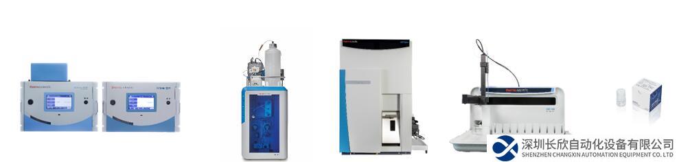 从左至右依次为Thermo Scientific 5030iQ和5014iQ新一代环境空气颗粒物连续监测仪、 Thermo Scientific Dionex Inuvion离子色谱仪、Thermo Fisher Scientific iCAP RQplus电感耦合等离子体质谱仪、Thermo Fisher Scientific iCS 65自动进样器、Appped Biosystems 乾坤白金SYBR Green预混液