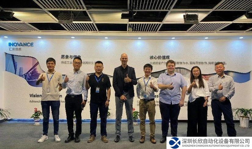 Komax&Schleuniger公司人员一行参观了汇川技术展厅,以及汇川伺服与新能源汽车动力总成车间,并与汇川技术海外事业部及线缆行业负责人进行了深入的交流探讨。