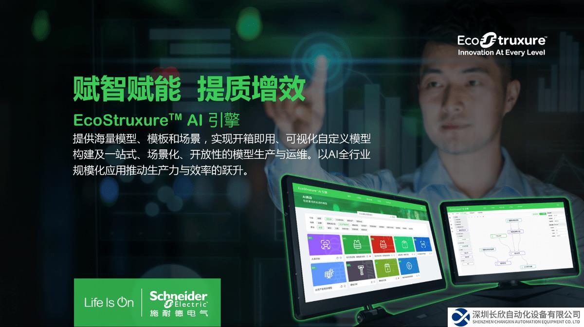 作为创新成果之一,施耐德电气在今年的创新峰会上发布了企业级一站式、场景化、开放的AI模型生产与运维平台EcoStruxureTM AI引擎,将能源管理和自动化领域的专业知识融入AI模型,为业务负责人、运营经理、数据分析师等用户提供低代码乃至零代码的AI应用。该引擎显著推动了AI技术的产业化与规模化应用,实现生产力与效率的极大提升,让更多企业从人工智能技术发展中获益。