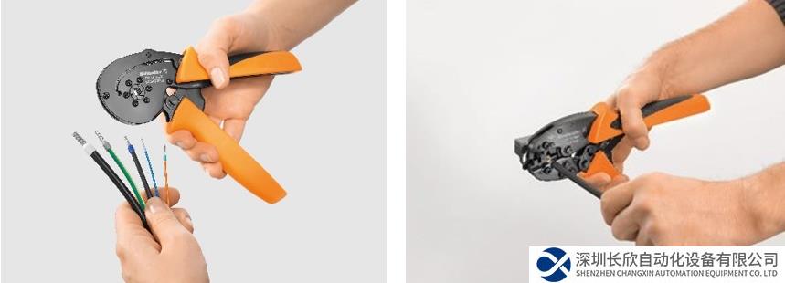 图例:使用魏德米勒工具可以迅速、轻松地完成压接