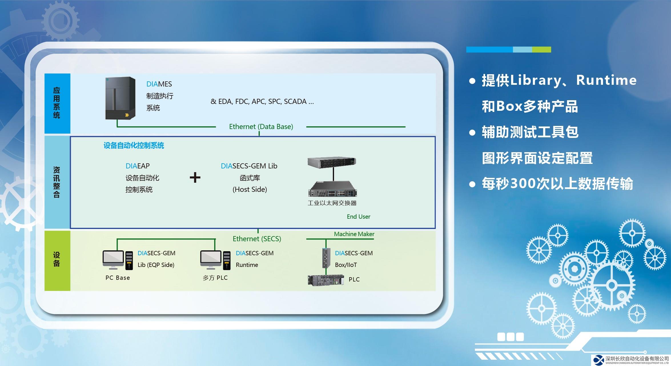 通过组态工具的设定和高度自动化的无缝整合,协助客户迅速的将SECS/GEM 标准导入设备,解决底层设备繁多及信息整合不易等问题。