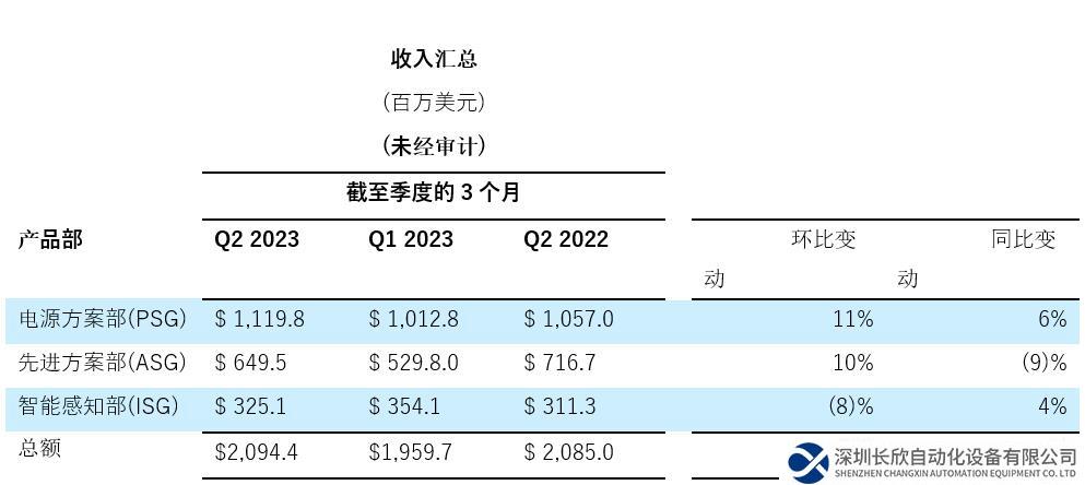 安森美公布其2023财年第2季度业绩,亮点如下: