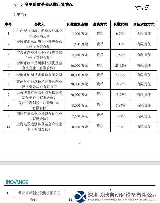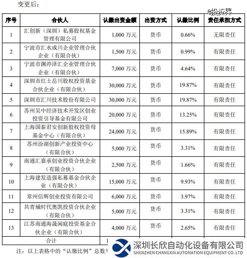 近日,汇川技术发布公告,公司全资子公司汇创新(深圳)私募股权基金管理有限公司(简称:汇川产投)完成对苏州汇创聚新股权投资合伙企业(有限合伙)的后续募集,扩募后基金规模增加至15.1亿元。