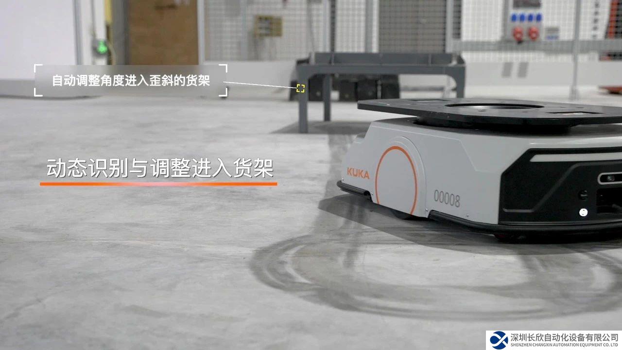 KMP 400P动态识别歪斜货架,自动纠正与货架中心位置的偏差,顶升动作更精准,动态纠偏回归轨迹中心,行走更安全。