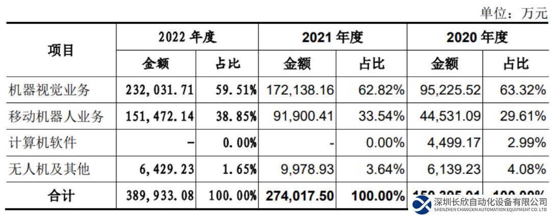 二轮问询中,公司机器视觉业务毛利率的波动及移动机器人业务毛利率的持续下滑也被进一步问询。招股书显示,公司上述两大业务在报告期贡献的营收占比均在95%以上,其中2022年贡献度大约是六 四开。