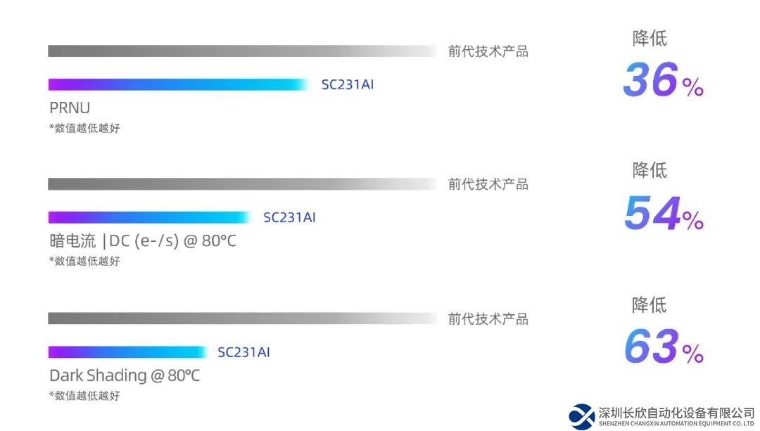 SC431AI和SC231AI依托思特威先进的超低噪声外围读取电路技术,并在高温成像性能方面均得到显著改善。较前代产品,SC231AI的PRNU显著降低36%,读取噪声降低8%。在80℃高温条件下,SC231AI的暗电流参数DC和Dark Shading,相较前代产品,分别大幅降低54%和63%,使摄像头在高温环境下也能输出优质清晰的图像。