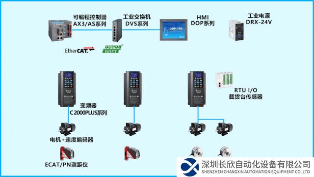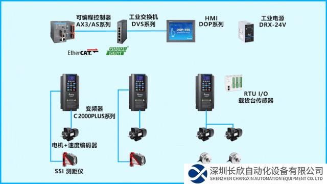 第二种:控制器位置双闭环控制:控制器AX3系列根据测距仪的信息反馈,控制变频器驱动机构电机运动,实现控制一体化。