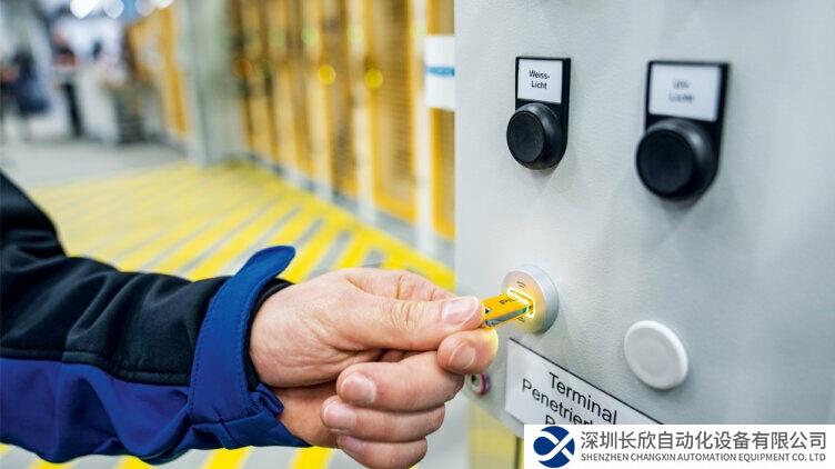 裂缝测试机长约三十米,宽约十五米,高约七米。它由多个工作区和加工区组成,共有九个加工间。因此,安全理念的核心是保障所有进料区和通道区的安全。集成到安全概念中的组件有皮尔磁的安全门传感器PSENslock(用于确保装卸车的位置)和PSENmlock(用于 14 个安全门的安全监控和防护锁定)。并非每个接触机器的员工都需要掌握所有的操作、干预和更改选项。Rhode + Wagner使用了皮尔磁的操作模式选择和访问权限系统PITmode fusion使MTU航空发动机公司等设备运营商能够进行单独的操作模式选择和访问权限管理。此外,它还能从根本上避免操作员出错、操作不当、对操作员造成危害以及对设备造成损坏。