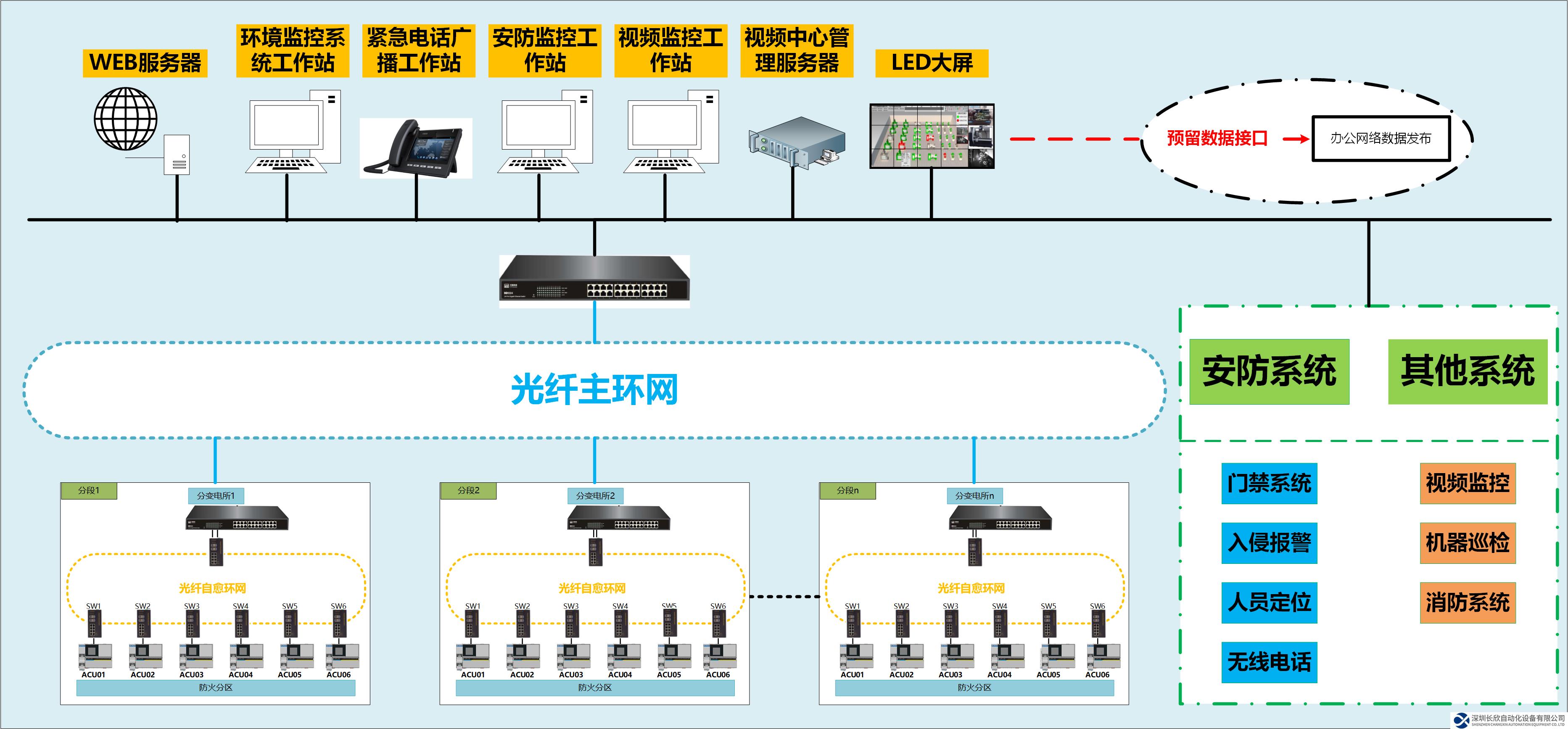 管廊设置了防火分区和变电所,支持实时工业以太网环网,总线速率不低于100M或1000M,具有强大的站间通信,不同变电所之间能实现快速交互,以及对分变电所和防火分区的集中监控和远程操控,提高了安全管理的效率和准确性。