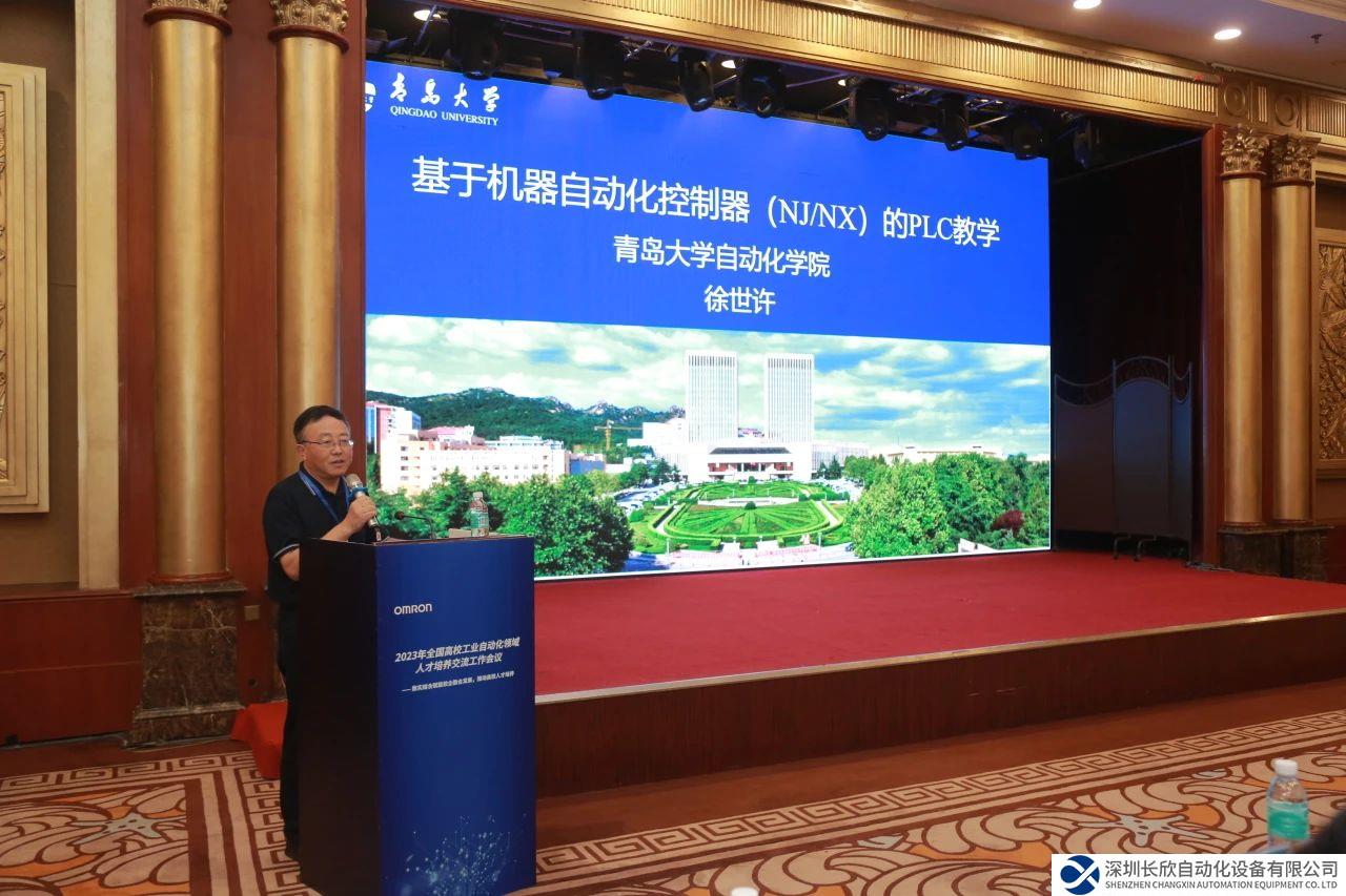 青岛大学自动化学院控制科学与工程系系主任徐世许教授带来“基于机器自动化控制器(NJ/NX)的PLC教学”的报告,详细分享了欧姆龙PLC课程教学改革情况,包括与欧姆龙合作开发的自动化课程教材、线上课程、实验等。