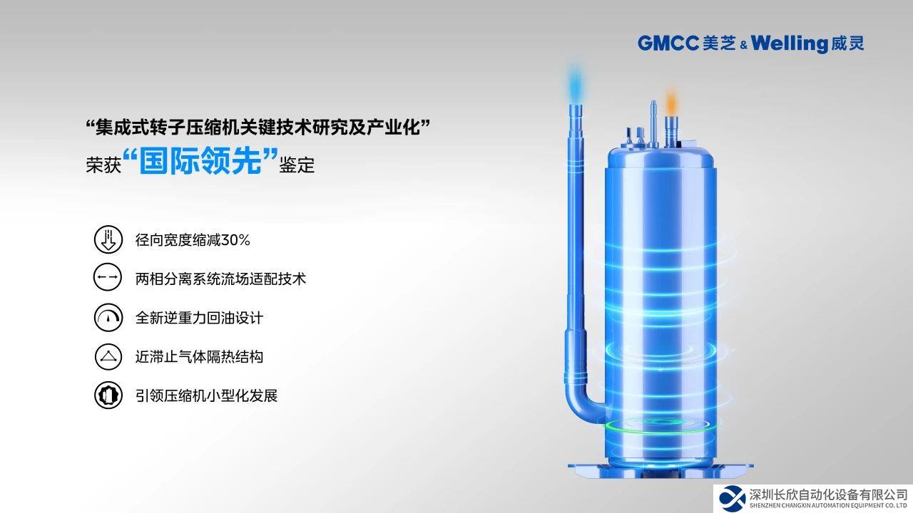 美的工业技术“集成式转子压缩机关键技术研究及产业化”颠覆常规转子压缩机的结构形式,研发出气液分离器内置的集成式转子压缩机,获国际领先鉴定