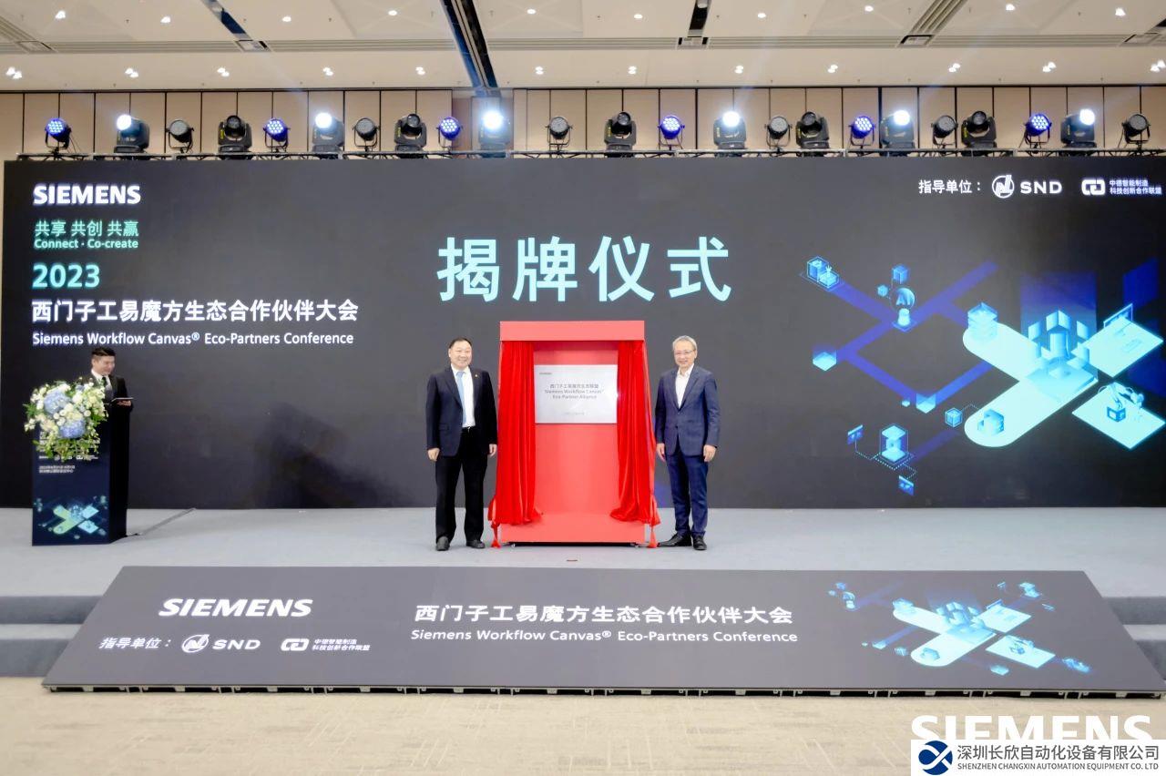 2023年8月31日-9月1日,2023西门子工易魔方生态合作伙伴大会(Siemens Workflow Canvas® Eco-Partners Conference)在苏州狮山国际会议中心举办。苏州高新区区党工委副书记、管委会主任宋长宝、西门子中国研究院院长朱骁洵博士、西门子中国研究院研发总经理李明博士、西门子 Xcelerator中国区总经理秦成等共同出席了活动。